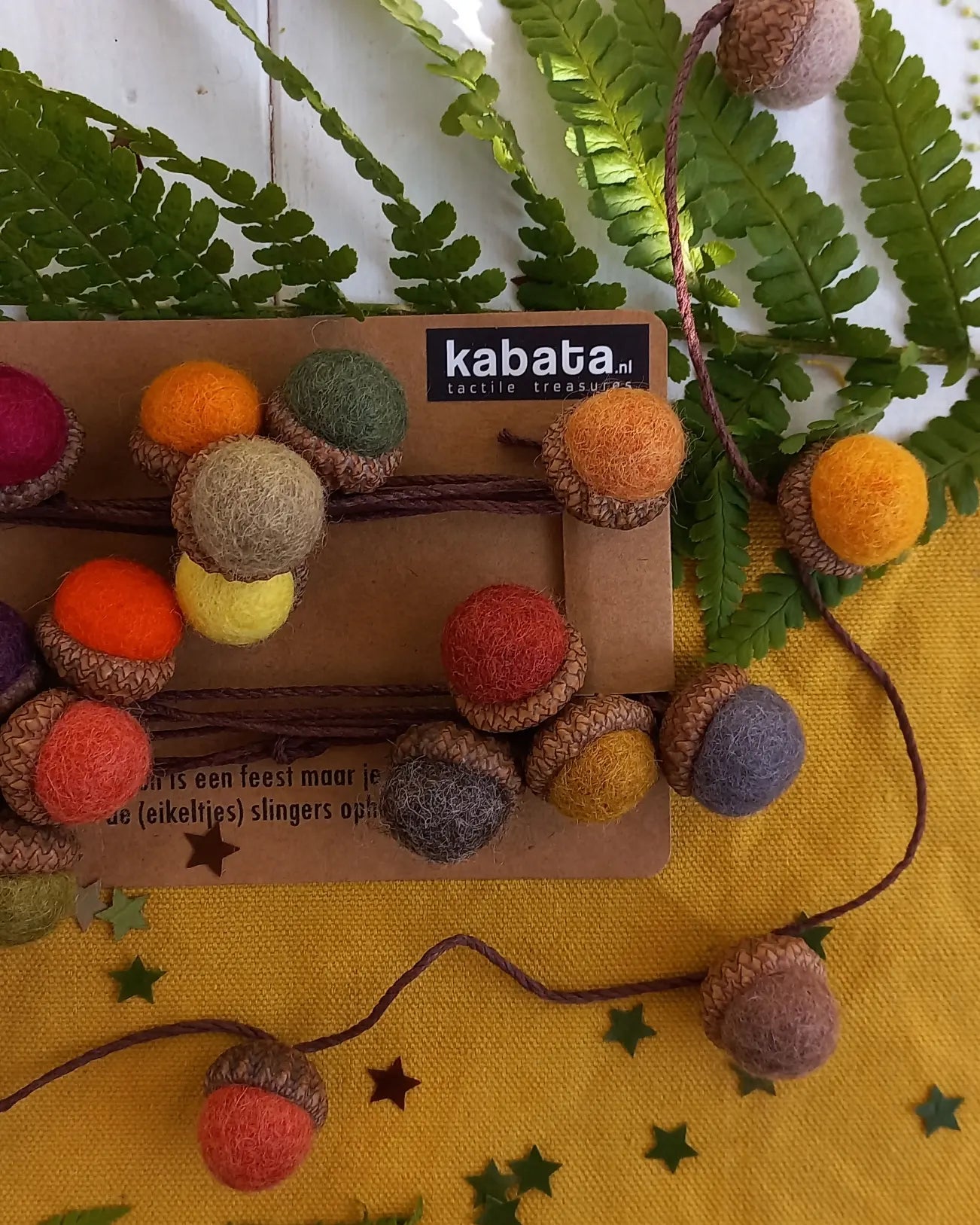 - Deze slingers zijn gemaakt met echte eikeldopjes, dus hou rekening met eventuele verschillen (in de maat) van 2 slingers. Ze zijn nooit precies hetzelfde. En dat is nou juist zo leuk.